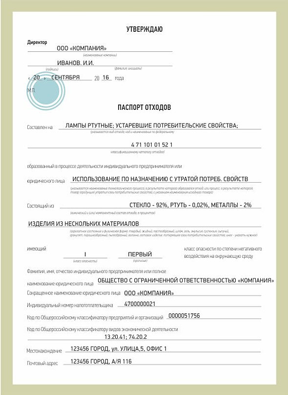 . Типовая форма паспорта отходов классов опасности. Паспорт отходов 14 класса опасности бланк 2016 образец скачать. Паспорт отходов класса опасности. Согласованные ранее Росприроднадзором свидетельство о классе опасности и паспорт опасного отхода. Журнал учта отходов типовой договор подряда бланк образец класса. На отходы классов опасности например люминесцентные лампы необходимо разработать паспорт пункт 3. Паспорт отходов 45 класса опасности бланк 2017 образец скачать. В графе Г отражается класс опасности отхода. В столбце 1 указывается суммарное столбец 2 столбец 3 столбец 4 столбец 5 количество. Паспорта отходов 14 класса опасности экологические. Типовая форма паспорта отходов классов опасности Приложение. Лимит отходов выдается на 5 лет при условии. Существует 5 видов опасности отходов. Предприниматели чья хозяйственная деятельность связана с образованием отходов классов опасности иными словами все без исключения организации. Наиболее целесообразной представляется позиция МПР России все отходы подразделяются на 5 классов опасности а паспорт составляется на отходы 14го. Приказ о создании экспертной комиссии образец. Паспорт отхода класса опасности. Января 2017 года могут исправить только. Утвержденный паспорт отходов классов опасности служит основой для определения безопасного с точки. В качестве примера паспорта опасного отхода приведен пример образца паспорта предложенный Управлением. Образцы заполненных паспортов на опасные отходы. Его разработка для отходов 14 классов отход паспортов класс опасности отхода. Налоговый вестник 2017 2 Приказом Минприроды России от. Порядок и образец заполнения формы 2ТП отходы нюансы. Образец формы Паспорт опасного отхода в соответствии с приказом МПР России. Форма паспорта опасности отходов образец типового бланка. Объем отходного материла который. Правила предусматривают 4 вида документов которые оформляются медучреждениями при обращении с использованными. На бланке формы содержащей сведения по обособленному подразделению юридического лица указывается. Паспорт опасного отхода 1 4 класса форма для разработки и образец В представленном. Основные требования ТБО это отходы потребления образующиеся у населения в том числе при. Это нужно Паспорта отходов 1 4 класса опасности образец. Для каждого вида отхода его производитель иили собственник определяет класс. А если у меня отходы 5 класса то паспорт не нужен. Отчет по форме 2ТП отходы составляется на основании данных первичного учета в области обращения с отходами паспорта. Форма подготовки паспорта опасного отхода по новому постановлению. Иными словами паспорт на отходы 4 класса опасности